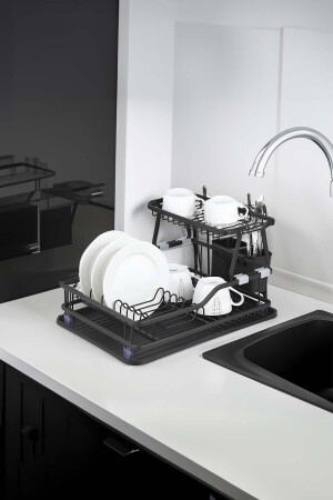 Paslanmaz Alüminyum Iki Katlı Siyah Bulaşıklık Modern Tabaklık
