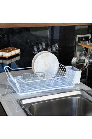 Açılır Kapanır Sürgülü Tabaklık Bulaşıklık Bulaşık Sepeti- Beyaz