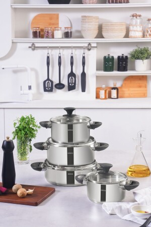 MNZ-Karaca Buca 8 قطع طهي الصلب مجموعة مع قاعدة الاندفاع مجموعة محتويات 16 سم صوص (1.7 ليت) 18 سم صوص (2.4 ليت) 22 سم صوص