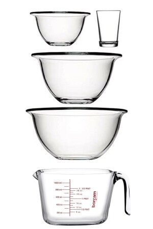 مجموعة إعداد MNZ-Paşabahçe Arda Türkmen ، كوب قياس البيركس (1000 ML) يتم تقديم أربعة من أدوات المطبخ الأكثر حاجة عند إعداد الوج