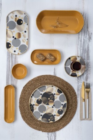 43 Parça Modern Gold Green Kahvaltı Takımı