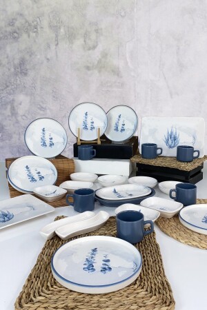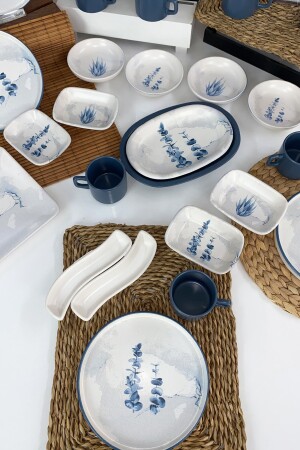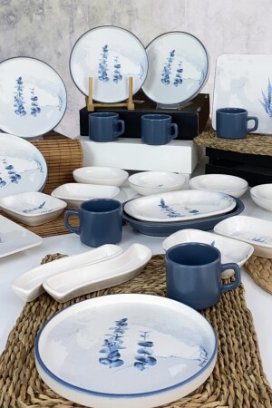 Çiğdem Blue Model 12 Kişilik 21 Parça Kahvaltı Takımı Kahvaltı Seti[ Mavi 12]