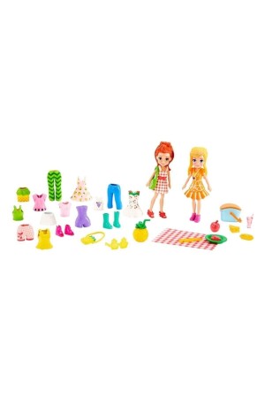 نزهة بيكنيك من جيب بولي مع حزمة الأزياء الجميلة. تضم حزمة الأزياء دمية بولي وليلا 7.62 سم ، بالإضافة إلى 10 ملابس