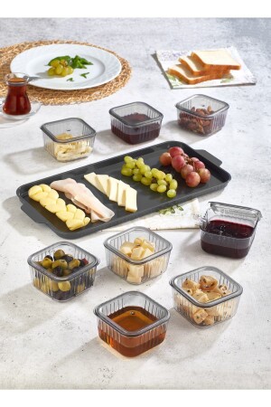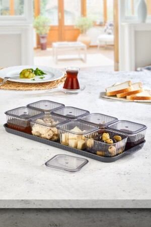6 Bölmeli Kare Kapaklı Tepsili Lüks Kahvaltılık Modern Sunum Seti Ve Saklama Kabı TYC00811401678