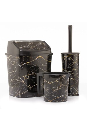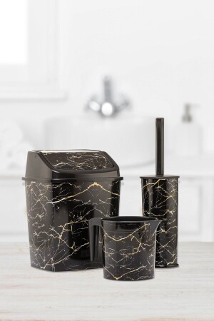 5 Parça Mermer Desen Mat Banyo Seti - Wc Fırçalık- Sıvı - Katı Sabunluk- Çöp Kovası- Diş Fırçalık