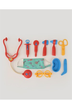 Çantalı Oyuncak Doktor Seti Tedavi Ekipmanı 11 Parça gözlük Steteskop Kartlık Enjektör 18x24cm
