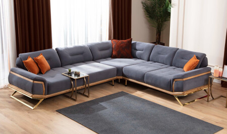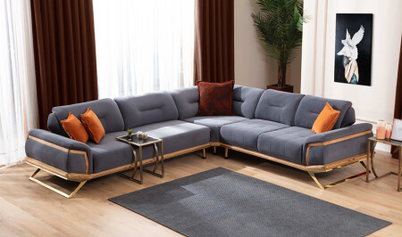 نموذج الأريكة الزاوية ذات الساقين المعدنية