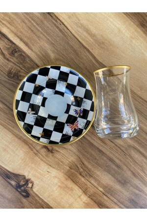 مجموعة الشاي من طراز MNZ-Checkered تضم 12 قطعة، 6 أكواب الشاي و 6 لوحة الشاي.