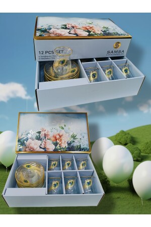 Balköpüğü 6 Kişilik Kahve Yanı Ayaklı Su Bardağı Seti