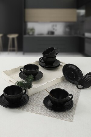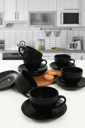 مادة: سيراميك • كيراميكا ماتت أسود مايرا شاي مجموعة 12 قطعة ل 6 أشخاص • بنية السطح: ماتت • معلومات المنتج • يتكون المنتج