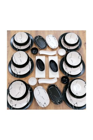 مجموعة الطعام من طراز MNZ 38 قطعة لـ 6 أشخاص نمط الرخام الأسود المقطوع dmt0003803838