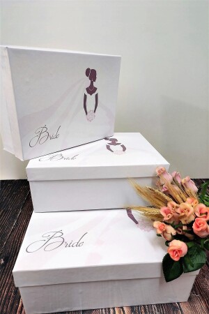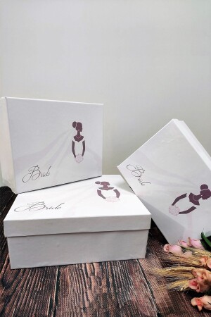 صندوق العروس من نوع MNZ-Bridal Box فساتين العروس من نوع Printed Bride 3 Piece Box هناك طباعة رقمية على المنتج.
