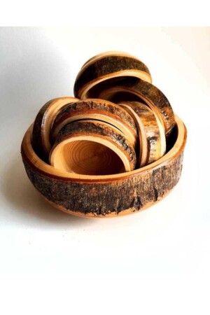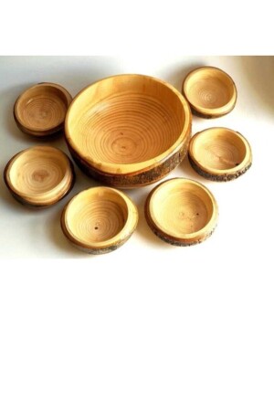 مجموعة العشاء الخشبية الطبيعية من نوع MNZ: تتكون من ست قطع، خمسة أكواب صغيرة وعاء كبير واحد. الكؤوس الصغيرة لها قطر 8-10 سم، والكؤوس الكبيرة 20