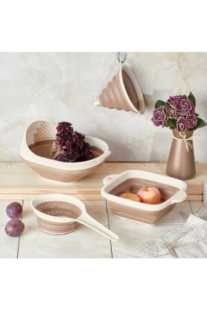 4'lü Katlanır Süzgeç Seti 4 Parça Mutfak Seti Akordiyon Pirinç Süzgeci Huni Badya Çeyiz Set