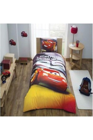 Rally Yarış Arabalı Desenli Mavi Çarşaflı 2 Yastık Kılıflı -Ranforce Tek Kişilik Nevresim Takımı