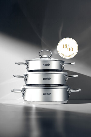 تم تصنيع مجموعة MNZ-NEHİR 6 PIECE STEEL PAN SET من فولاذ معدنيات الصلصة من الدرجة الأولى 304 . لديها لامعة سلسة. الغط