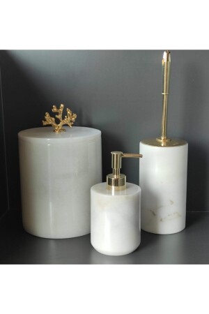 مجموعة حمامات من 3 قطع من الرخام الأبيض (مجموعة غرف الاستحمام، وعاء فرشة، وموزع صابون سائل) PLN189