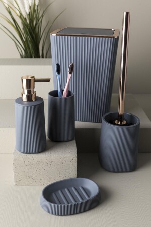 5 Parça Lenox Akrilik Bambu Banyo Seti Gri
