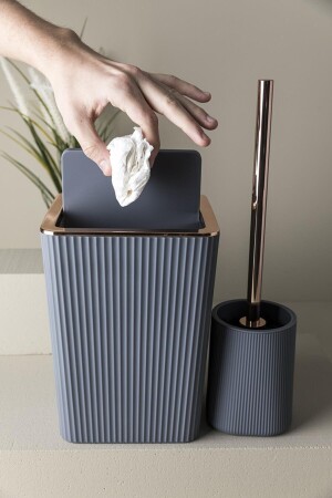 5 Parça Mermer Desen Mat Banyo Seti - Wc Fırçalık- Sıvı - Katı Sabunluk- Çöp Kovası- Diş Fırçalık