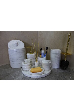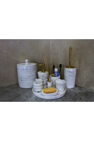 مجموعة حمام مصممة بنمط من الرخام MNZ مع علبة قمامة متعددة V1 (الرأس الذهبي) BS003