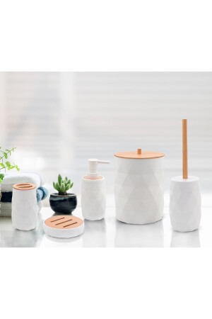 5 Parça Lucas Akrilik Bambu Banyo Seti Beyaz