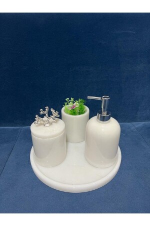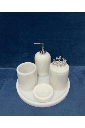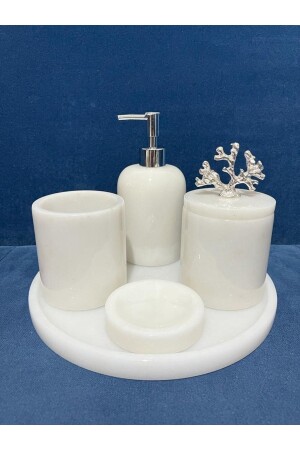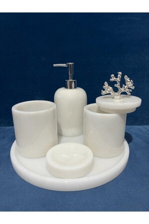 مجموعة حمام من الرخام الأبيض من MNZ 5 قطع 0718716960784