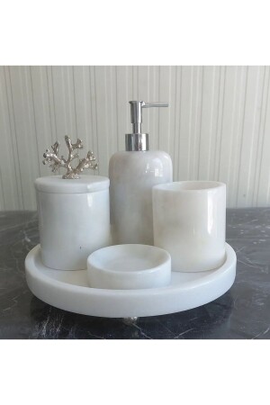 مجموعة الحمام من المرجوعة من 5 قطع تتضمن 1 طبق من الرخام + 1 مُوزع صابون الرخام + 1 مُوزع صابون سائل الرخام + 1 حامل