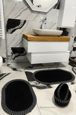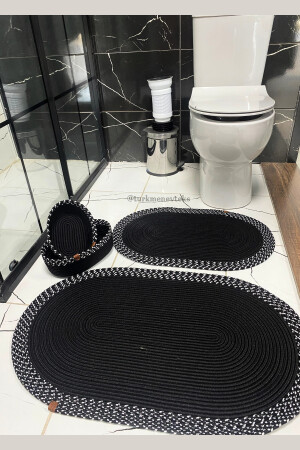MNZ-3- Piece حمام السجادة المطبخ البيضاوي بلوش مقعد المرحاضة مجموعة سوداء 60x90 ((ELIPS)-50x60 ((ELIPS)-60x60 ((R