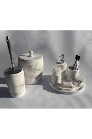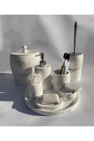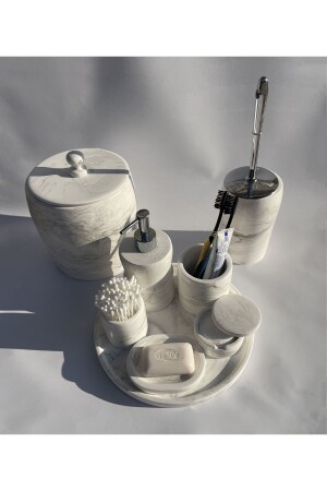 مجموعة الحمام متعددة. مجموعة محتويات: 26 سم صحن - مصدر صابون سائل - مصدر صابون صلب - حامل فرشاة الأسنان - مساحة القطن - مسحوق القط