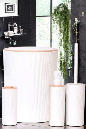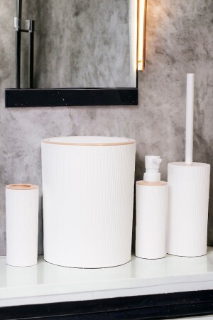 5 Parça Lucas Akrilik Bambu Banyo Seti Beyaz