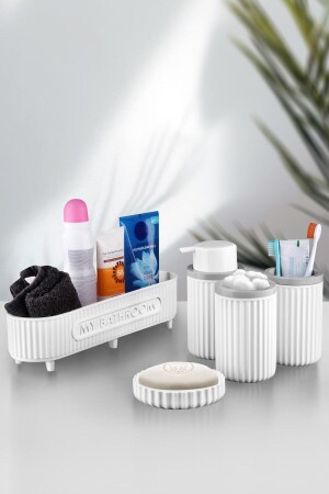 5 Parça Lucas Akrilik Bambu Banyo Seti Beyaz