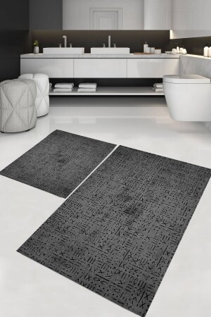 Lazer Kesim Peluş 2'li Oval Siyah Banyo Paspas Takımı