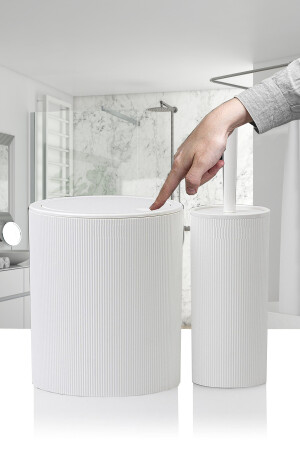 مجموعة حمام MNZ-2-Piece -Style Round Touch-Touch عمليات حمام المستنقع المخطط مع الغطاء - فرشة مجموعة أبيض
