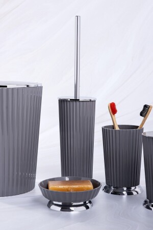 5 Parça Lenox Akrilik Bambu Banyo Seti Gri