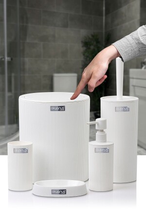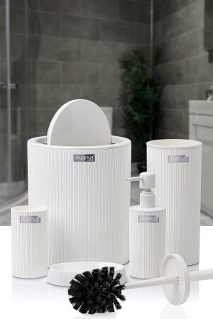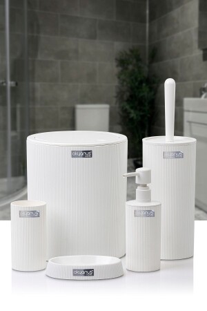 5 Parça Lenox Akrilik Bambu Banyo Seti Beyaz