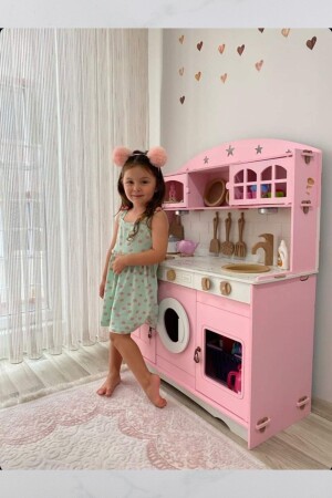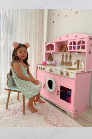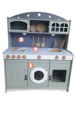 مجموعة خدمة المطبخ من الألعاب الخشبية المصنوعة من طلاء MNZ و 1 هدية إضاءة LED