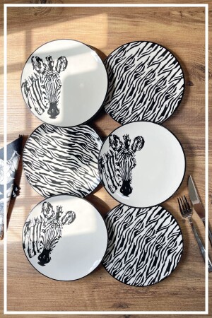 مجموعة خدمة كعكة السيراميك من 6 قطع مصنوعة يدويا من MNZ - نمط زيبرا HZR1413