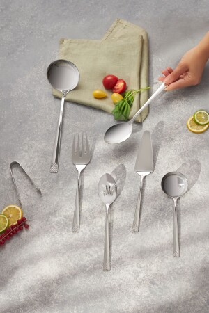 م.ن.ز-مأكولات البحر 6 قطع من الفولاذ المقاوم للصدأ الكولاندر ملعقة اللادل جريل طنغات الخدمة مجموعة