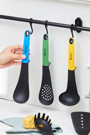م.ن.ز-مأكولات البحر 6 قطع من الفولاذ المقاوم للصدأ الكولاندر ملعقة اللادل جريل طنغات الخدمة مجموعة