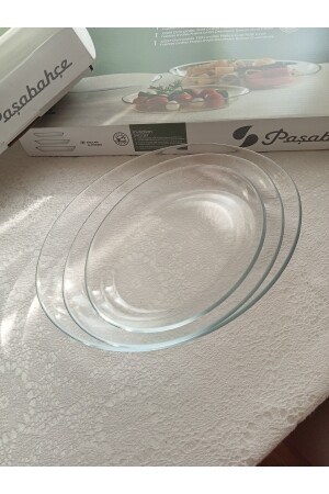 مجموعة دعوات بيضوية من 3 قطع MNZ-Paşabahçe، 3 أجزاء، طوابق خدمة 96501 طابح بحجم كبير 22 x 29 x 4 سم متوسط الحجم 19