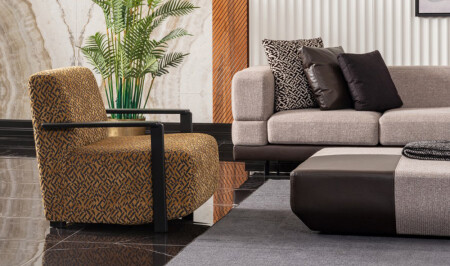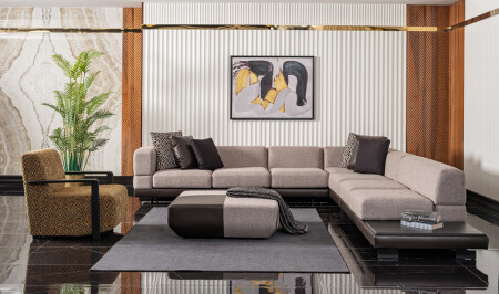 نموذج مجموعة الزاوية الحديثة والمريحة. لا يتم تضمين القفاز والكرسي.