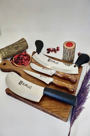 مجموعة سكين مطبخ من طراز MNZ-Sürmene Set Cleaver + Armor + Knife Set