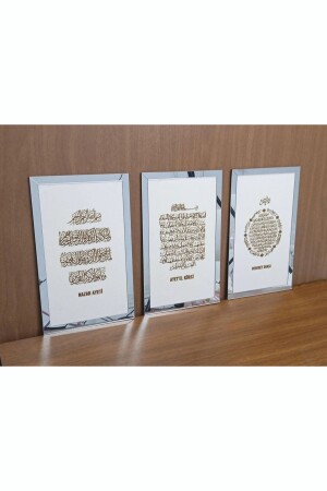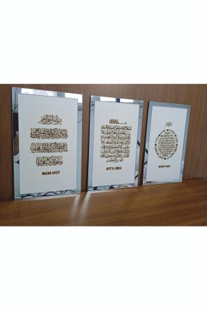 Ayetel Kürsi- Felak ve Nas Suresi Dini İslami Cam Tablo- Ev Ofis Duvar Dekoru Hediyelik Büyük Tablo