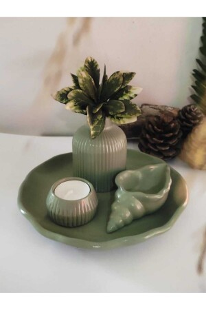 مجموعة عباءات ديكورية MNZ مجموعة الأشياء مجموعة بامباس عباءات شمعة حاملة غلاف السحاب الصفائح 4 قطع اللون الأخضر النقود.