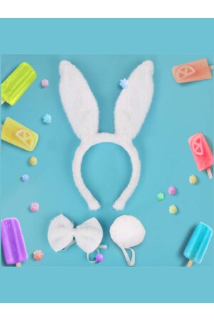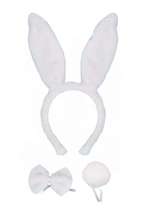 مجموعة عرض من أرنب MNZ (التاج + ربطة القوس + ذيل) لون أبيض