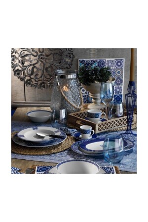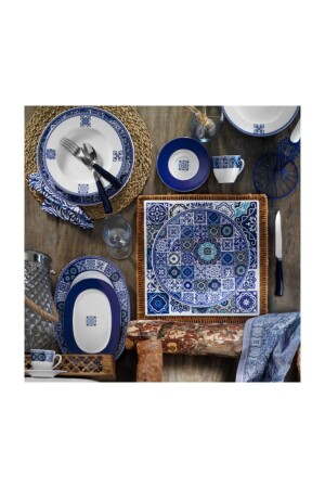مجموعة العشاء تتكون من 24 قطعة، 6 قطع من طوابق خدمة 25 سم، 6 قطع من طوابق عميقة 23 سم (مستديرة) ، 6 قطع من طوابق كع