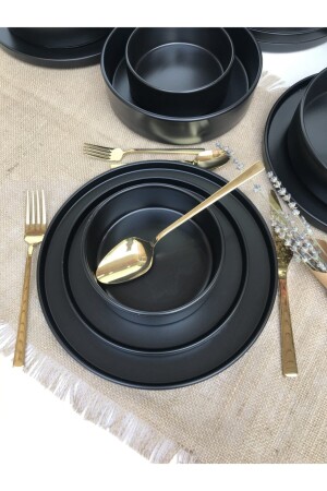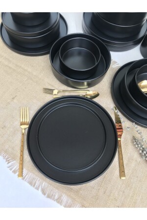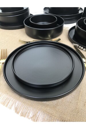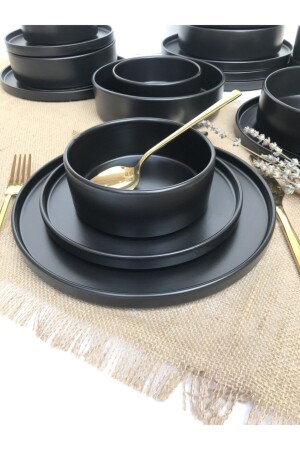 (MNZ-Matte) عشاء أسود / فطور مجموعة 30 قطعة لـ 6 أشخاص dmtaks202330