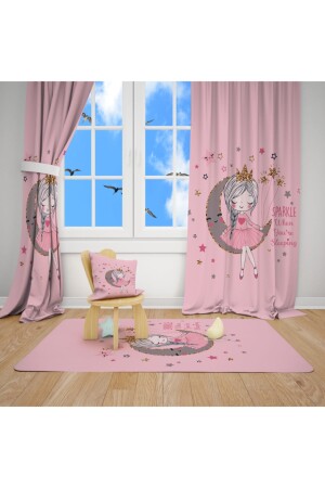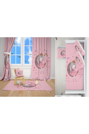 مجموعة غرفة الفتيات من طراز MNZ-Pink Ayda (الستائر الخلفية - غطاء السرير والوسادة - السجاد) EHKOMBİN103
