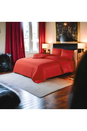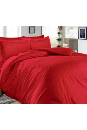 مجموعة غطاءات الساتين الأحمر من MNZ، نوع فندق ومنزل مزدوج، 2 غطاءات وسادة ورقائق، مجموعة غطاءات الساتين بدون لون مر