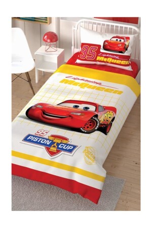 Rally Yarış Arabalı Desenli Mavi Çarşaflı 2 Yastık Kılıflı -Ranforce Tek Kişilik Nevresim Takımı